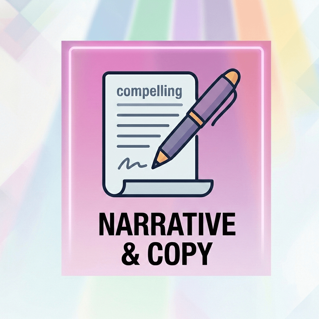 Lane 3: Narrative and copy What are we saying and how does it land? Email copy, landing page structure, social content, one-pager language, talk tracks. Good copy moves people from interest to action.